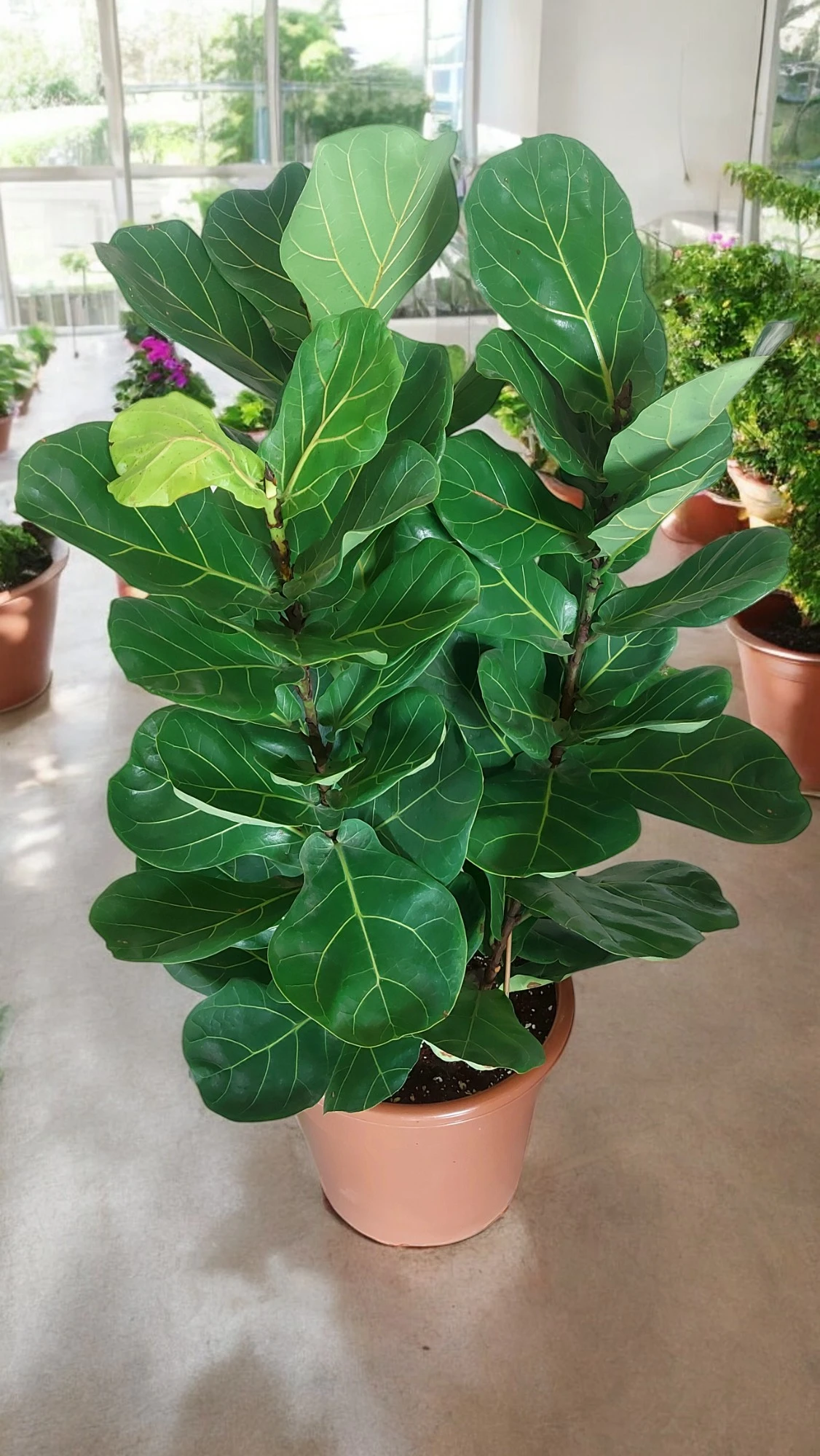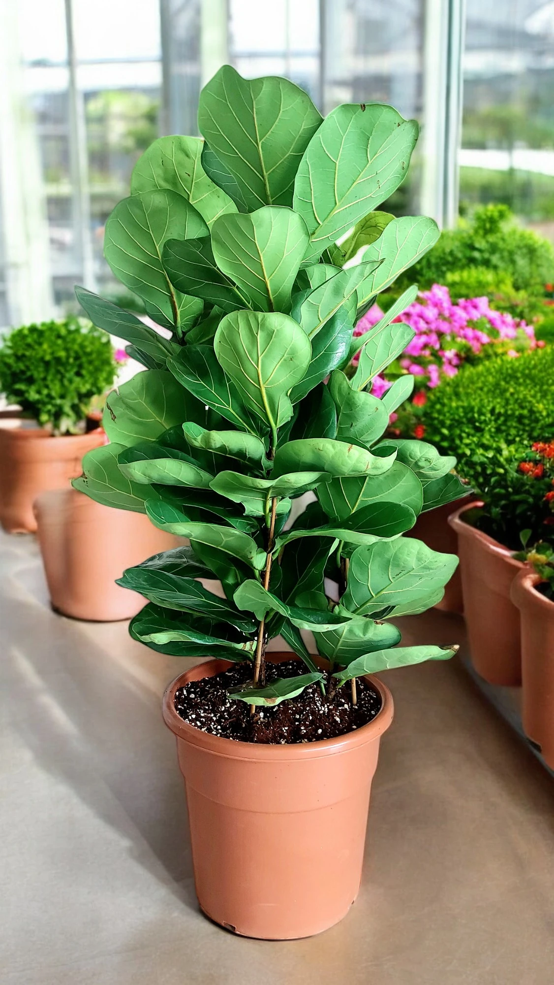 The Ficus Lyrata, also known as the Fiddle Leaf Fig, features three robust stems topped with large, glossy, violin-shaped leaves that make a bold statement in any room. This 3-stem variety offers a fuller and more balanced look, ideal for larger spaces like living rooms, offices, or lobbies.